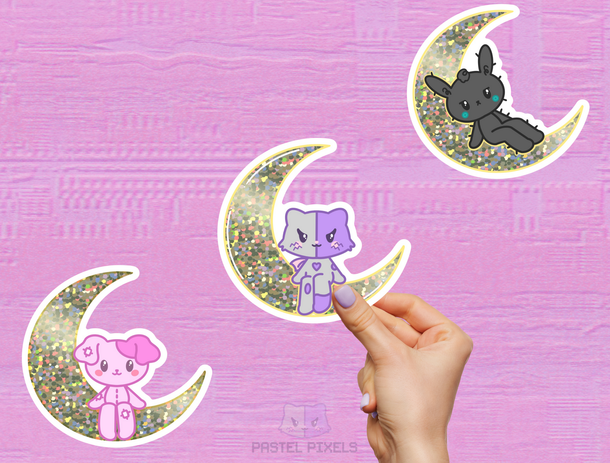 Can't stop dreaming about what's out in the universe? Dos, Kitty, and Haze know that feeling all too well. As they each sit on the moon, contemplating their next adventure. Each sits on their moon, contemplating their next adventure. Pick your favorite companion and let's go.